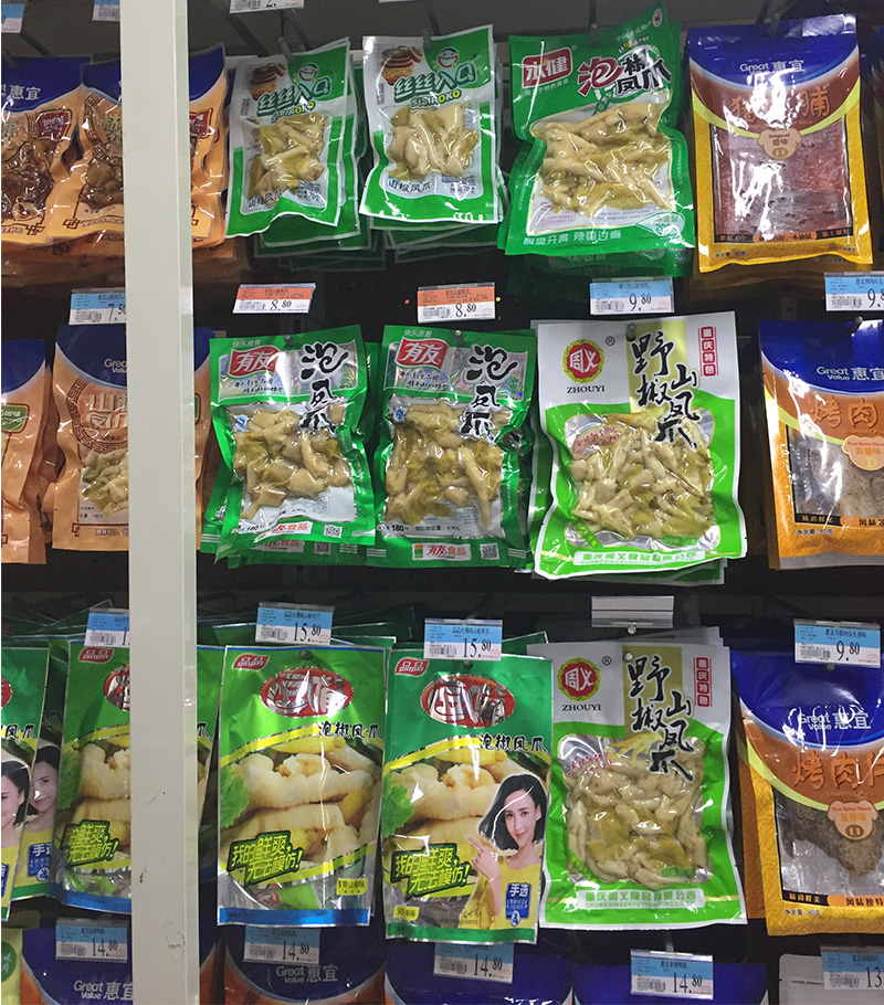 在中國,有很多企業(yè)喜歡走跟風(fēng)路線,做一個擦邊球的產(chǎn)品。比如下面的鳳爪產(chǎn)品,第一推出市場的產(chǎn)品包裝設(shè)計綠色的,那么接下來新的品牌為了能夠奪得這一成熟市場的一杯羹,所以也紛紛推出同樣風(fēng)格的產(chǎn)品。很多時候,這樣做第一就是為了能夠擾亂市場,阻擊對方品牌發(fā)展,第二,希望是能夠借助對方教育成熟的市場帶動自己的產(chǎn)品銷售。但是這樣的品牌視覺發(fā)展路線是不正確的。