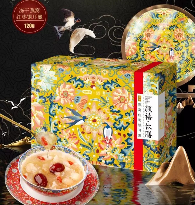 在雙十一營(yíng)銷期間,好想你聯(lián)合故宮食品推出了一款聯(lián)名定制款新品宮廷凍干燕窩銀耳羹—“顏禧·飲膳”,將宮廷食膳的養(yǎng)生美顏燕窩融入健康營(yíng)養(yǎng)的凍干技術(shù),算是食品行業(yè)中的又一突破和對(duì)新領(lǐng)域跨界合作的嘗試。